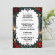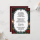 Fleurs rouges foncées aux accents dorés et bougies brûlantes entourent un cadre noir et gothique sur cette belle invitation de fête de vacances.