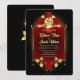 Invitation de mariage florale romantique et moderne avec les couleurs classiques noir, or et rouge qui ne se démodent jamais.