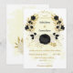 Fleurs noires et blanches romantiques avec faire-part de mariage botanique feuille d'or Les détails de la parties scintillant sont simulés. Il convient aussi bien aux mariages qu'aux parties d'engagement.
