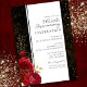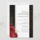 Cartes d'invitation pour le 50e anniversaire de mariage avec fleurs rouges gothiques, éclaboussures rouges et noires, fleurs dorées. Feuilles florales en faux or. Police de caractères script avec un nom en police sérif facile à lire. Facile à ajuster pour vos propres besoins de mariage.