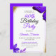 Avec des fleurs violettes aquarelle, des confettis de parties scintillant dorée, un cadre simple et un design délicat de papillon violet, cette disposition dégage élégance et éclat, parfait pour fêter un 90ème anniversaire.