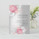 Un arrière - plan faux argenté. Décoré de grandes roses roses roses blanches et roses. Personnalisez et ajoutez vos noms et les détails du mariage.