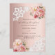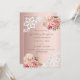 Invitation Fleurs roses dorées rose crème réception de mariag