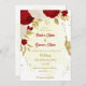 Fleurs romantiques rouges et blanches avec faire-part de mariage botanique feuille d'or Les détails de la parties scintillant sont simulés. Il convient aussi bien aux mariages qu'aux parties d'engagement.