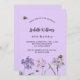 Un arrière - plan violet, couleur lavande. Décoré d'abeilles et de fleurs sauvages peints dans le violet et le rose. Personnalisez et ajoutez un nom et des détails du parti.