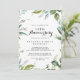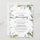 Cette invitation d'anniversaire de mariage tropicale et élégante pour les 50 ans est parfaite pour un anniversaire moderne. Le design présente principalement des feuilles tropicales vertes avec une touche de fleurs roses disposées avec élégance en couronnes et formes géométriques. Changez le nombre pour célébrer n'importe quel anniversaire.