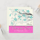 Fleurs de magnolia turquoise, annonce de mariage rose vif Save the Date, avec une belle branche de magnolia avec des fleurs turquoise, des boutons et un ruban rose vif. Palette de couleurs : ivoire, turquoise, noir, rose vif, gris. Un design floral moderne, contemporain, élégant avec une touche orientale, asiatique, adapté pour votre mariage de jardin printanier ou estival.