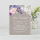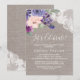 Cette carte d'invitation fleurs violets et dentelle fêtons est parfaite pour un événement champêtre. Le design rustique chic présente une belle composition de fleurs violettes prune, lilas et rose blush avec de la dentelle florale blanche sur un fond en lin élégant. Cette invitation est idéale pour une fête de fiançailles, une soirée d'enterrement de vie de jeune fille, ou tout autre événement ou fête.