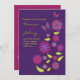 Des fleurs rétro lumineuses et funky sont au coeur de cet ensemble de faire-part de mariage à thème violet et vert. Voir tous les objets correspondants pour cette collection : Visitez Poptastic Bride Boutique :