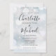 Avec les noms de style de signature, cette élégante invitation de mariage gris et blanc peut être personnalisée avec vos informations en lettrage chic sur un fond de givre hivernal. Conçu par Thisisnotme