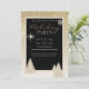 Invitation Flocons de neige et pins paillettes or brillant