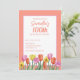 Beautiful watercolor illustration of orange, pink and yellow tulips on a white background for spring themed birthday party.