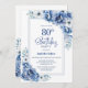Invitation Floral bleu moderne 80e fête d'anniversaire