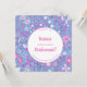 Motif de fleurs botaniques modernes en rose et blanc éparpillé sur un arrière - plan bleu périwinkle. Une superbe carte de demande de demoiselle d'honneur assortie à coordonner avec votre collection de mariages. Art original de Nic Squirrell.