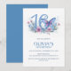 Invitation Floral Butterfly Blue 16th Birthday Party