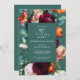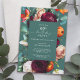 Une invitation à la fête d'anniversaire fleurie d'automne moderne dans une palette de couleurs de bijoux riches de turquoise, rouge bordeaux, orange rousse, et rose rousse crée une belle bordure florale autour de votre texte. Ces couleurs sont souvent utilisées de la fin de l'été à l'automne et pendant les mois d'hiver. Un minuscule visage manuscrit de type script épelle le mot anniversaire dans un style insouciant. Personnalisez le modèle de texte avec les détails de votre événement. Montré ici comme une célébration de 60ème anniversaire, vous pouvez personnaliser avec n'importe quel âge.