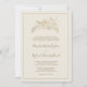 Cette faire-part de mariage dorée à la crème fleurie or est parfaite pour un mariage élégant. Le design boho moderne présente un arrangement fantaisiste de faux feuilles d'or dessiné à la main, de feuilles et de botaniques sur un arrière - plan crème. Remarque : Ce design ne comporte pas de véritable feuille d'or. C'est un graphisme de haute qualité fait pour ressembler à du papier doré.
