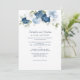 Customisez ce faire-part de mariage en cliquant sur le bouton "Personnaliser". La carte présente une élégante et moderne fleurs bleues poussiéreuses, blanches, bleues et vertes. CONSEIL : Idéal pour les fêtes surprise, les baby showers, les mariages et les retraites.