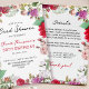 Cette douche à carte de jardin fleurie et lumineuse par la poste est une façon joyeuse et significative de célébrer l’anniversaire d’une femme sans lancer une fête traditionnelle. L'avant présente une élégante présentation d'invitation encadrée de fleurs d'aquarelle vives, idéale pour un anniversaire de printemps ou d'été. Sur le dos se trouve un poème sucré qui explique le fonctionnement d'une douche à carte, guidant les invités à envoyer une carte d'anniversaire remplie d'amour et de voeux de bien. Que vous planifiez pour votre mère, votre grand-mère ou une autre personne spéciale, c’est une belle option pour les invitations à l’occasion du 50e anniversaire ou d’autres événements marquants. Une façon réfléchie et discrète de montrer à quelqu’un qu’il est aimé, surtout quand il n’est pas possible de rassembler tout le monde en personne. Idéal pour les grands-parents aussi, cela s'intègre parfaitement avec la douche par des invitations d'anniversaire par la poste, des idées de douche de carte, et des idées d'anniversaire de 50ème pour maman qui se sentent encore personnel et festif.