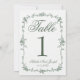 Classy and elegant old money white and emerald green wedding table numbers. As you see it features a white old money background with green rustic script that match the whole suite. And green floral frame.