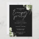 Cette élégante invitation à la soirée mariage fleurie en noir et blanc, avec de jolies lampes à cordes et une verdure fleurie, peut être personnalisée avec vos informations en typographie chic avec les détails de votre site web mariage et votre code QR au verso. Conçu par Thisisnotme©