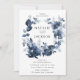 Élégantes invitations de mariage florales avec vos noms encerclés par une couronne fleurie de fleurs abstraites d'aquarelle et de feuilles dans les tons bleu indigo vibrant. Personnalisez les invitations florales indigo en ajoutant vos détails mariages ci-dessous. Conçu pour coordonner avec notre collection Abstraite de mariages floraux Indigo.