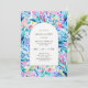 Floral Painting graduation invitation avec un arrière - plan floral coloré et abstrait avec une arche en blanc. Le dos montre le design floral correspondant (qui peut être enlevé si vous le souhaitez).