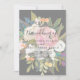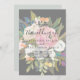 Cette faire-part de mariage florale peinte et grise foncée conviendra parfaitement à un mariage moderne. Le design élégant et romantique présente de belles fleurs acryliques peintes en rose et blanc, avec des pops de violet coloré, bleu, orange et jaune, superposés avec votre texte.
