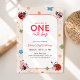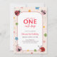 Invitation Floral Red Pink One Cute Bug Ladybug 1st Birthday