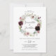 Cette faire-part de mariage de couronnes à fleurs romantiques est parfaite pour un mariage élégant. Le design boho rustique moderne présente des fleurs d'aquarelle romantiques dans des tons doux de bordeaux, mauve, rose rousse et blanc crème avec des feuilles verts.
