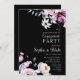 Floral rose, blanc et bleu | Black Engagement Party Invitation - Vous cherchez une jolie invitation de fiançailles florales? Regardez cette invitation noire, qui a des fleurs roses, blanches et bleues sur le dessus et le bas de l'invitation fiançailles. Ces jolies fleurs encadrent les mots, créant un beau thème printemps ou été sur votre papeterie mariage. Personnalisez votre invitation de fiançailles avec tous vos détails, y compris les noms du couple, la date de la fête, l'emplacement, et des informations sur la façon de RSVP et qui lance la fête!