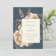 Cette élégante invitation au mariage présente un bouquet luxuriant et romantique en ivoire avec fausse feuille d'or rose et feuillage de parties scintillant sur un arrière - plan turquoise foncé. Customisez le texte rose rose dans des polices de style sur un rectangle en ivoire. L'envers offre de l'espace pour les détails mariages sur un arrière - plan en ivoire solide, ainsi qu'un code QR que les clients peuvent scanner pour visiter votre site Web et RSVP, ce qui permet d'économiser le coût d'impression et d'envoi de cartes RSVP séparées.
