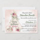 Teepee rose doux, aventures, invitation baby shower avec une adorable tente blanche ou tipi ornée de fleurs roses.