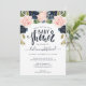Invitation florale baby shower Rose Navy