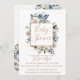 L'aquarelle fleurit dans bleu et crème poussiéreux avec l'invitation rose de baby shower de cadre d'or. Personnalisez le texte, le style de police, la couleur et la taille.