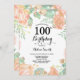 Invitation florale d'anniversaire de pêche botanique 100th. Invitation rose florale d'anniversaire de pivoines pour des femmes. Fleur florale d'aquarelle. Fleurs élégantes de rose et de pivoine de rose. Anniversaire adulte. Arrière - plan blanc. Noir et blanc. 13ème 15ème 16ème 18ème 20ème 21ème 30ème quarantième cinquantième soixantième soixante-dixième quatre-vingtième quatre-vingt-dixième 100th, tous âges. Pour davantage de personnalisation, cliquez sur svp la "personnaliser il" bouton et utilisez notre outil de conception pour modifier ce modèle.