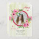 Ce beau, l'aquarelle, le rond, le cadre de photo avec des groupes de fleurs roses et le feuillage est soutenu avec un motif vert et blanc de rayure. Perfectionnez pour une fille de n'importe quel âge. (<a href='http://www.freepik.com/free-vector/pretty-background-with-watercolor-flowers-for-mother-s-day_1102231.htm'>Conçu par Freepik</a>). <br/><br/>Il est facile customiser la carte avec vos mots, options de police, de couleur de police, de papier de forme et choix de six types de papier<br/><br/>Pas exactement que recherchez-vous ? Tous nos produits peuvent être conçus en fonction du client pour répondre à vos besoins à aucun supplément<br/><br/>Contactez-simplement nous chez askcottonlamb@gmail.com. <br/><br/>Produits coordonnés disponibles : Demandez-juste nous !