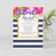 Cette belle bordure fleurie est jumelée à un arrière - plan rayé bleu marine et blanc et à un cadre doré qui conserve les détails de votre fête.<a href='http://www.freepik.com/free-vector/wedding-card-with-flowers-and-stripes_1165628.htm'>Conçu par Freepik</a>). <br/>() La carte est facile à customiser avec votre libellé, police, couleur de police, options de forme de papier et le choix de six types de papier.<br/>() Pas exactement ce que vous cherchez? Tous nos produits peuvent être conçus sur mesure pour répondre à vos besoins sans frais supplémentaires.<br/>() Il suffit de nous contacter à heartfelthelper@gmail.com .<br/>() Coordination des produits disponibles : Il suffit de nous demander!