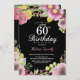 Floral 60e anniversaire Invitation pour les femmes. Aquarelle florale, rose, noir arrière - plan en damier. 13e 16e 18e 21e 30e 40e 50e 60e 70e 80e 90e 100e. N'Importe Quel Âge.
