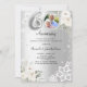 Pour un 60e anniversaire de mariage élégant et romantique. Un arrière - plan faux argenté décoré de fleurs blanches, de roses, de faux diamants et de dentelle blanche. Personnalisez et ajoutez votre photo, vos noms et vos détails.