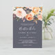Cette terre rustique fleurit violet espagnol nuestra boda invitation est parfait pour un mariage de automne. L'élégante décoration de tons de terre comprend des fleurs rustiques d'aquarelle en terre cuite, en cuivre, orange brûlé, pêche, rose roux et blanc crème avec style boho vintage.