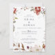 Ce simple faire-part de mariage fleuri est parfait pour un mariage rustique. Le design boho fantaisiste est composé de fleurs rustiques roses rousses, bordeaux et marsala aux tonalités sobres et romantiques. Enregistrez du papier en incluant les détails au verso du faire-part de mariage plutôt que sur une carte de boîtier séparée. Inclure également les informations RSVP si votre invité répondra par voie électronique (facultatif).