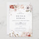Ce simple faire-part de mariage fleuri est parfait pour un mariage rustique. Le design boho fantaisiste est composé de fleurs rustiques roses rousses, bordeaux et marsala aux tonalités sobres et romantiques. Enregistrez du papier en incluant les détails au verso du faire-part de mariage plutôt que sur une carte de boîtier séparée. Inclure également les informations RSVP si votre invité répondra par voie électronique (facultatif).