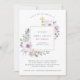 Ces belles et élégantes invitations Baptême présentent un cadre de jolies roses mauves et roses rousses avec des feuilles verts et des accents faux or, sur un arrière - plan blanc propre pour un look qui réussit à la fois à la mode et vintage inspiration. Il y a aussi une fausse croix dorée. L'arrière de l'invitation est assorti à des bordures fleuries.