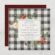 Invitation à la douche nuptiale carré et branchée encadrée par le feuillage aquarellé de houx, de verdures et de fleurs d'hiver sur un arrière - plan de buffle plaid. Customisez avec vos informations pour votre jour de douche. Cliquez sur "cliquer pour customiser plus loin" pour modifier le style, la taille, la couleur ou la couleur arrière - plan de la police.