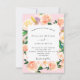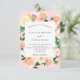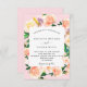 Un faire-part de mariage floral coloré et tendance, rose vif, or rose et blanc. Un arrière - plan rose vif classique à l'avant. Décoré de grandes fleurs verdoyantes aux couleurs de l'eau, de fleurs blanches, d'or rose, de rose vif et de verdure. Personnalisez et ajoutez vos noms et les détails du mariage. Texte noir. Retour : arrière - plan de couleur rose pâle.