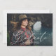 Invités Invitations à votre fête de remise de diplômes avec nos élégantes invitations FlowScript graduation party. Les invitations chic à la fête de graduation présentent la photo horizontale du diplômé avec "Graduate" dans une superposition de script de calligraphie blanche et moderne. Personnalisez le front en ajoutant le nom du diplômé, le nom de l'école et l'année de fin d'études. L'invitation retourne aux détails de votre fête en blanc avec un arrière - plan gris solide ou la couleur de votre choix. Parfait pour les diplômes du lycée et du collège.