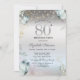 Invitation Flowers Blue Butterflies Silver 80th Birthday