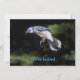 Photo d'une fosse bleue volante avec un arrière - plan de feuilles et fougères verts et ombres sombres. Le bluejay comique est vu en plein vol, avec ses plumes bleues brillantes se dressant bien contre les arbres du arrière - plan.