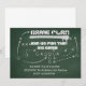 Get your squad ready for the main event with this "Game Plan" football party invitation! The design features a realistic green chalkboard texture background covered in classic white chalk football plays, Xs, and Os. The header reads "GAME PLAN" in a stencil font with a spray-paint style underline, followed by "JOIN US FOR THE BIG GAME."
